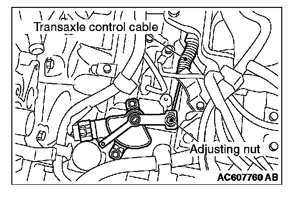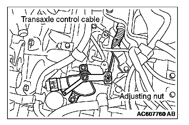 5. Tighten the transaxle control cable using the adjusting nut with the specified torque.