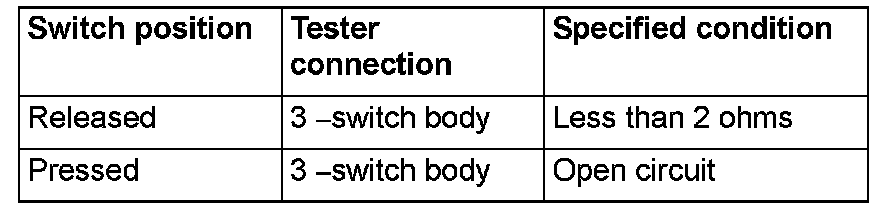 Remove the rear door switch (LH). Then check the continuity between the switch terminals and the switch body.