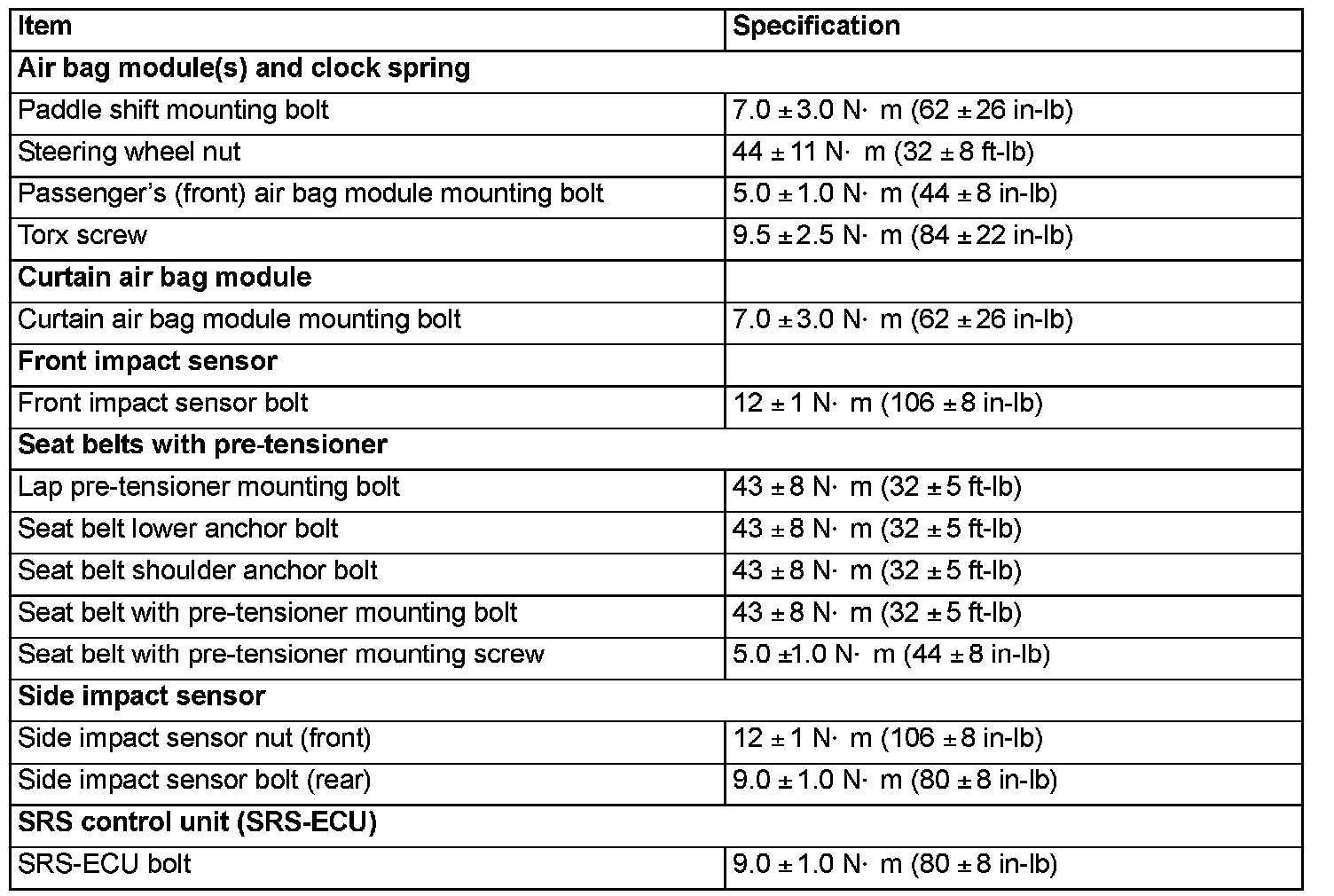 Fastener Tightening Specifications: