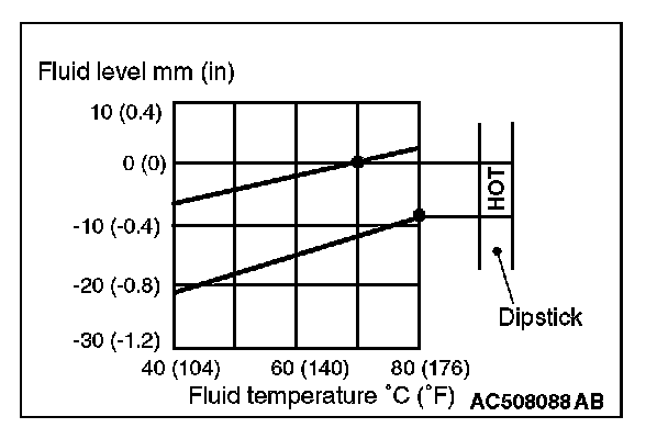 NOTE: When a certain amount of time is required to warm up the transmission fluid to the normal operating temperature 70 - 80 °C (158 - 176 °F), check the oil level referring to the characteristics chart.