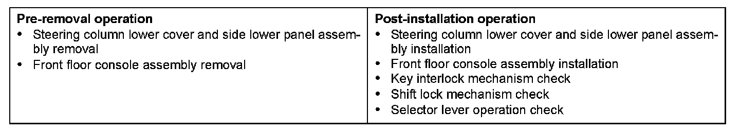 CVT KEY INTERLOCK AND SHIFT LOCK MECHANISMSREMOVAL AND INSTALLATION