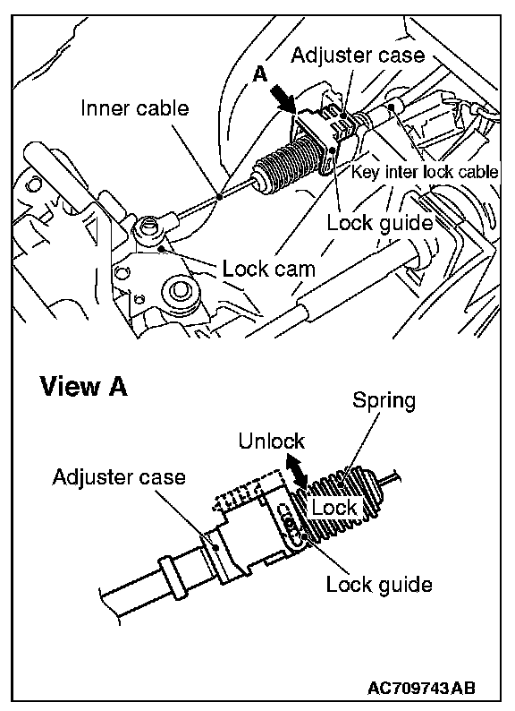 [A] KEY INTERLOCK CABLE (STEERING LOCK CYLINDER SIDE) INSTALLATION