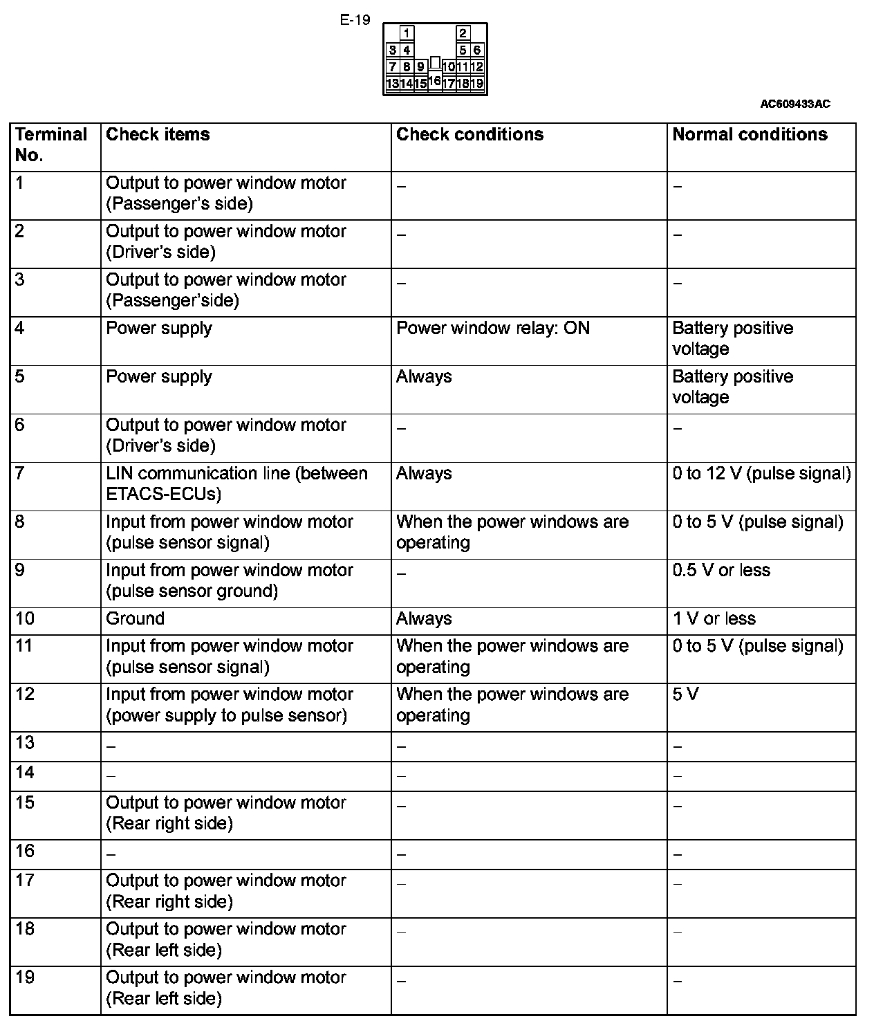 Power Window Switch Terminal Check