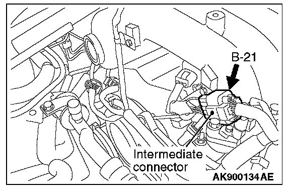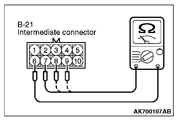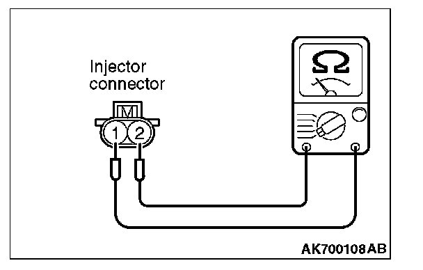 2. Measure the resistance between injector side connector terminals 1 and 2.