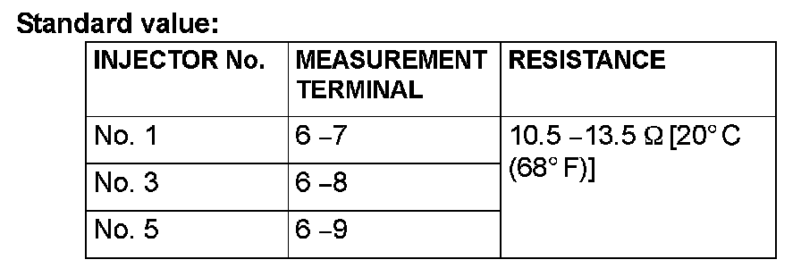 Standard value: 10.5 - 13.5 ohms [at 20 °C (68 °F)]