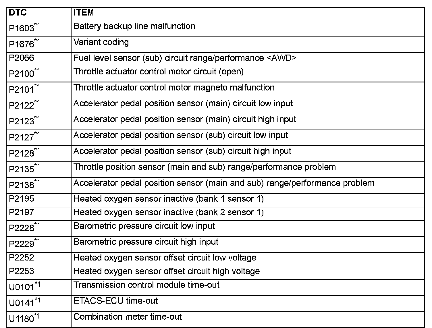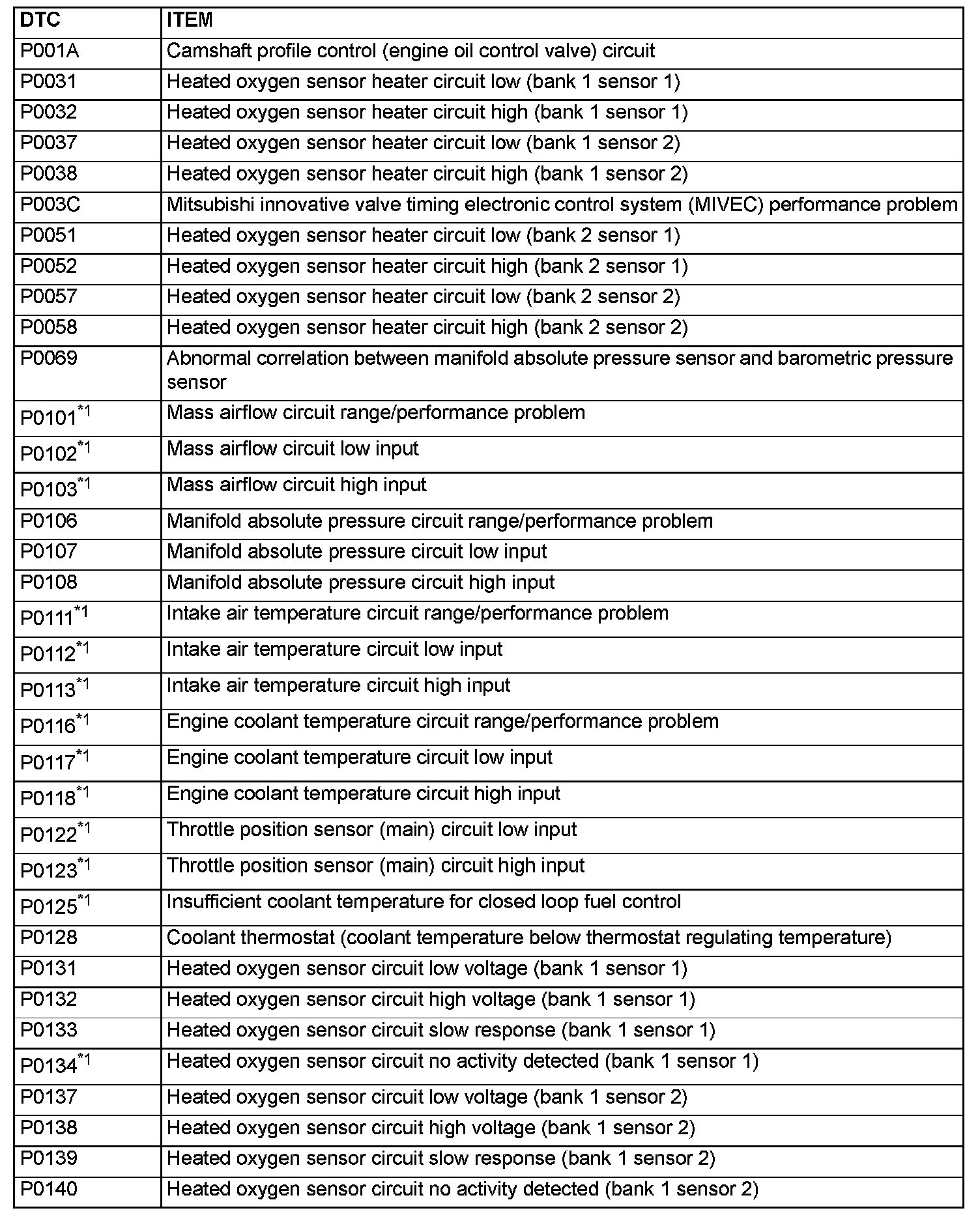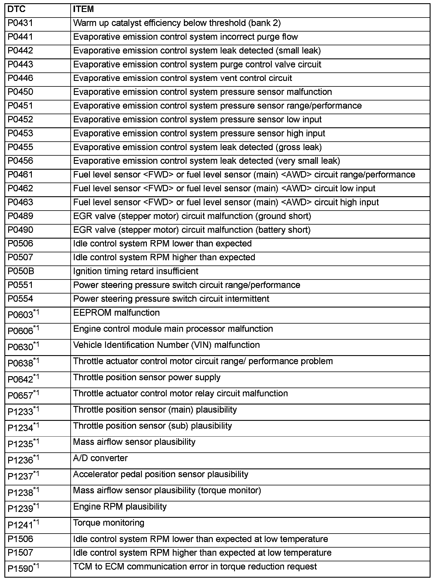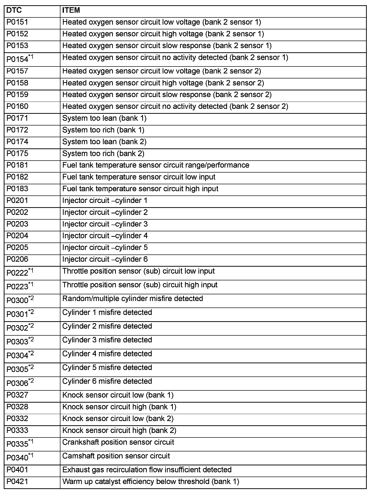 - The codes marked with a "*2" in the diagnosis code number column have the following two conditions for illuminating the Malfunction Indicator Lamp (SERVICE ENGINE SOON or Check Engine Lamp).
