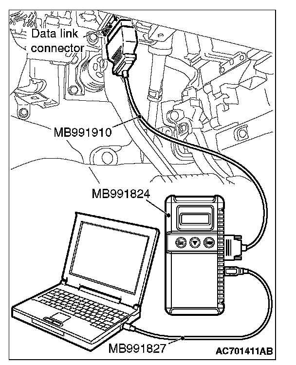 5. Connect special tool MB991910 to the data link connector.