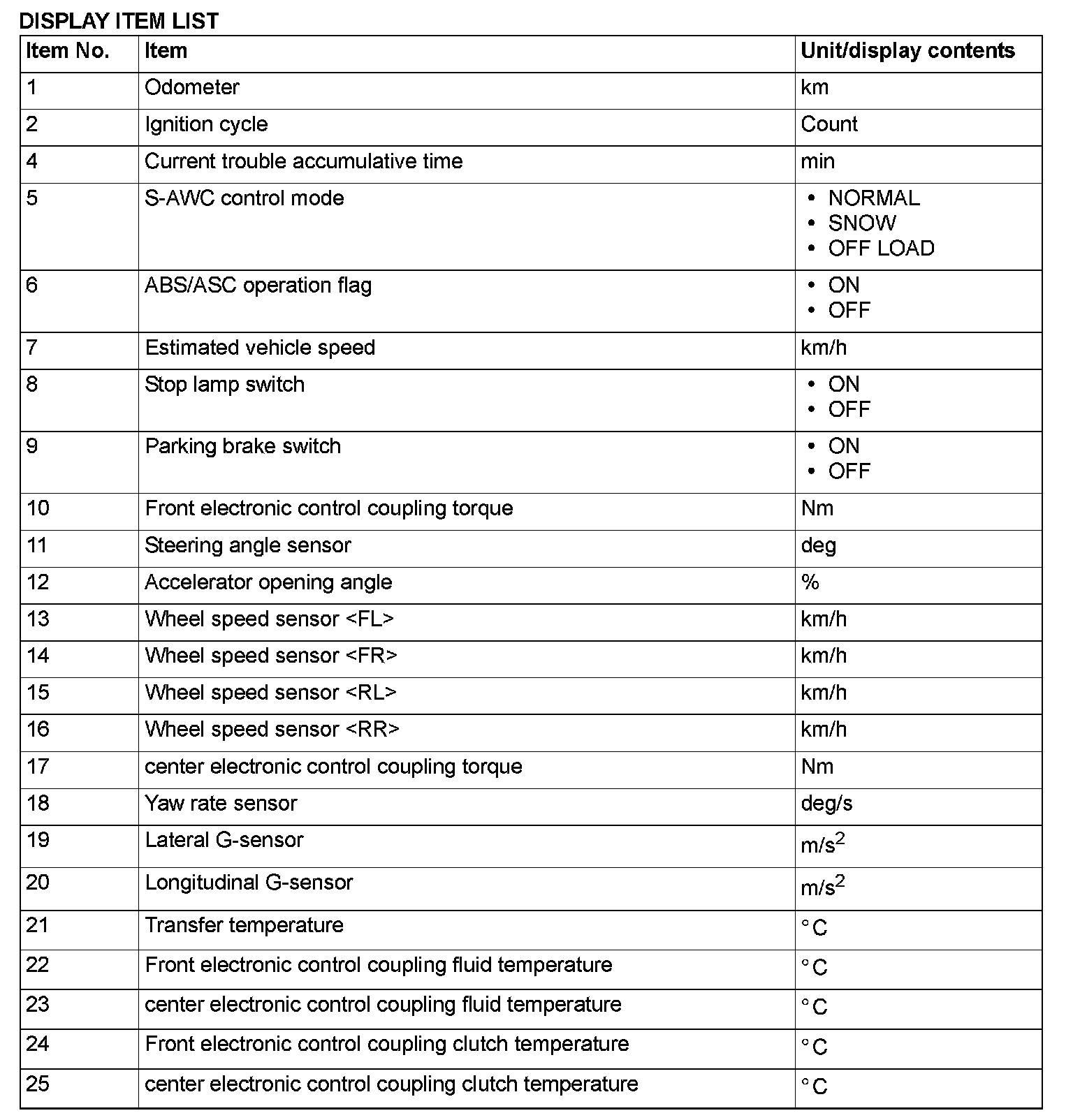 Display items of the freeze frame data are as follows.