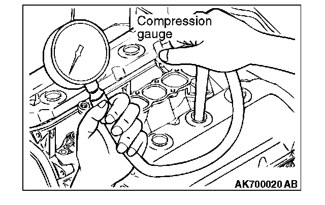 8. If there is a cylinder with compression or a compression difference that is outside the limit, pour a small amount of engine oil through the spark plug hole, and repeat the operations in steps 5 to 7.