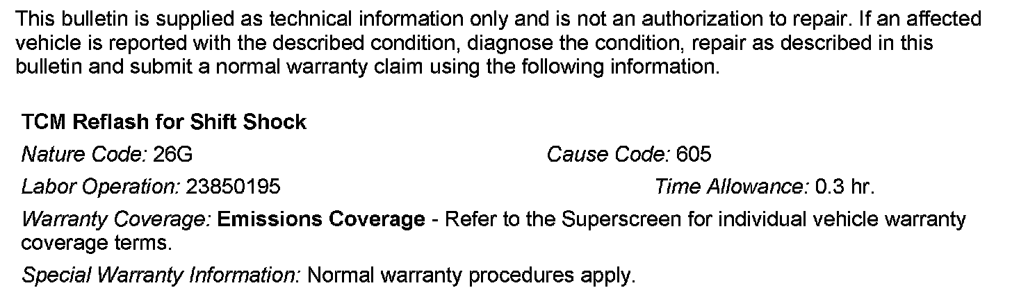 This TSB describes procedures to reprogram the TCM with new parameters to correct the condition.
