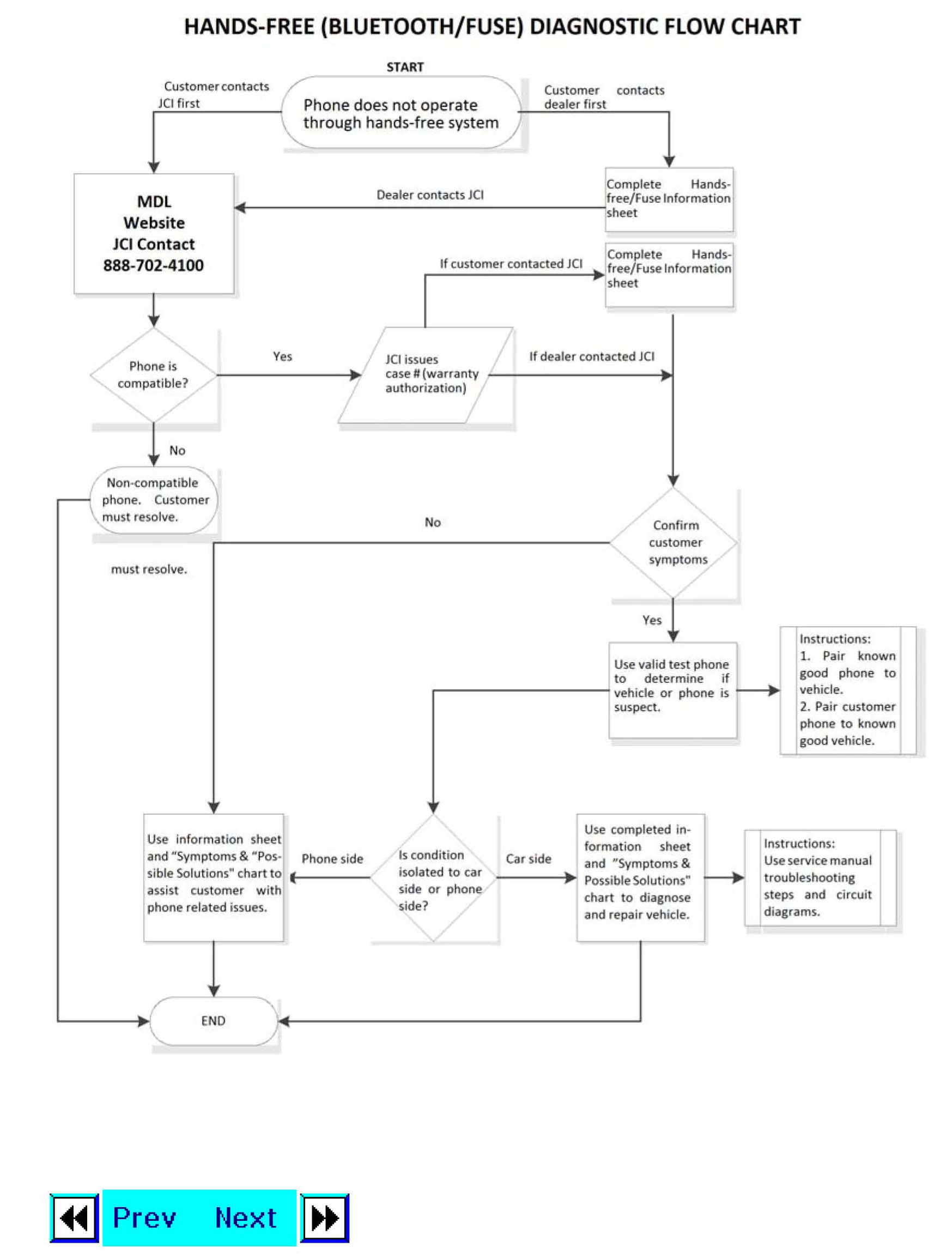 Hands-Free (Bluetooth/Fuse) Diagnostic Procedure