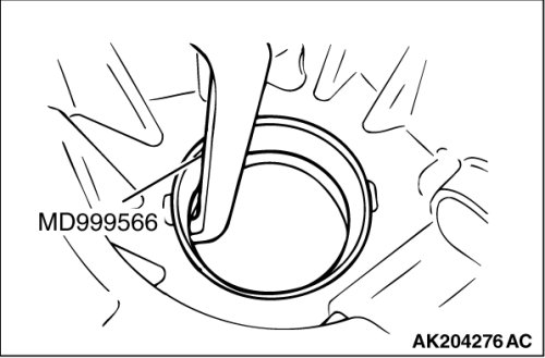 Using special tool MD999566, remove the outer race from the clutch housing.