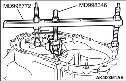 2. Turn the nut on special tool MD998346 to pull up on the tool and take out the outer race.