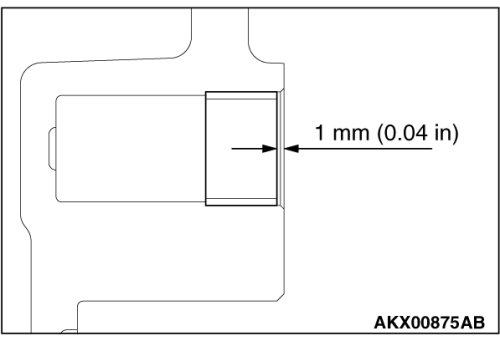2. Be sure the bushing is fully seated as shown. It must be 1 mm (0.04 inch) below the housing surface.