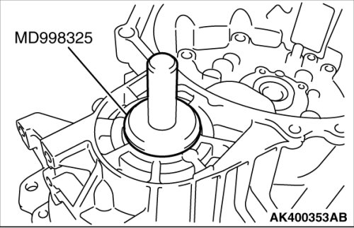 2. Using special tool MD998325, press fit the oil seal into the clutch housing.