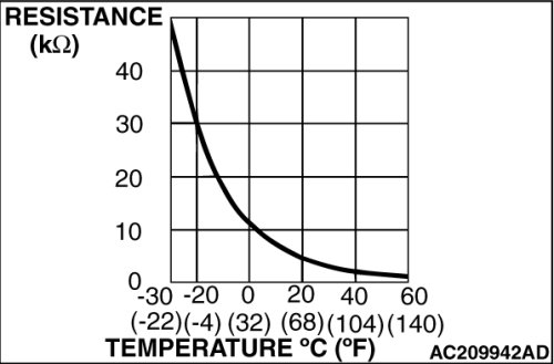 Measure the resistance between the sensor terminals under at least two temperatures. The resistance values should meet the values shown.