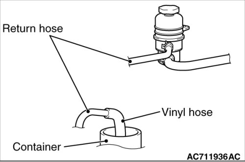 2. Disconnect the return hose connection, and then connect a vinyl hose to the return hose, and drain the fluid into a container.