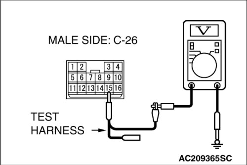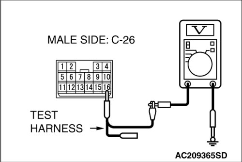 (1)Disconnect intermediate connector C-26, and measure the voltage at the male side (at floor wiring harness side).