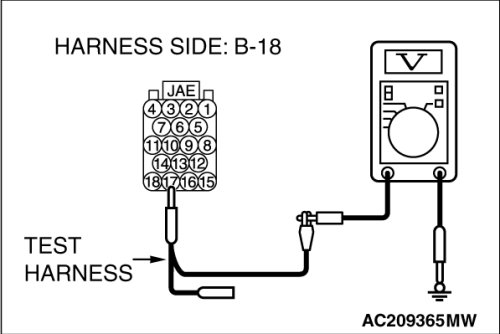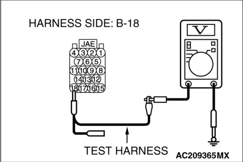 (1)Disconnect ECM [M/T] or PCM [A/T] connector B-18 and TCL/ASC-ECU connector A-38, and measure the voltage at the harness side of ECM [M/T] or PCM [A/T] connector B-18.
