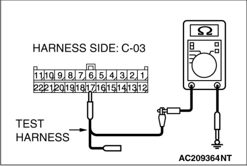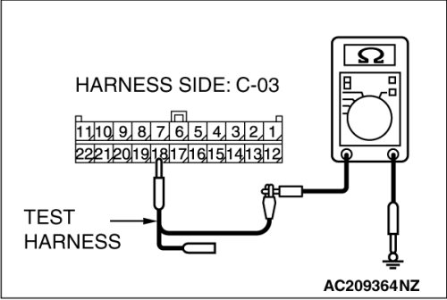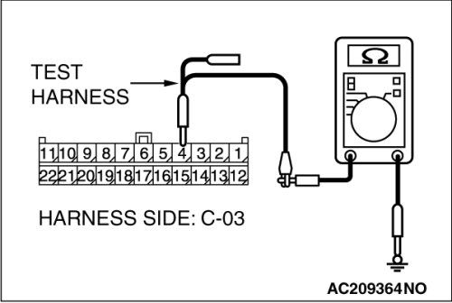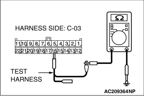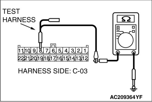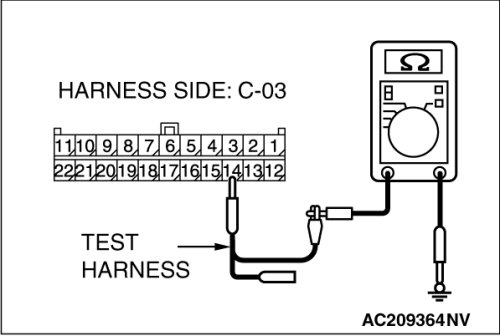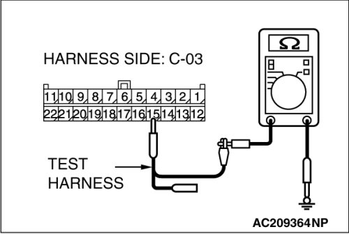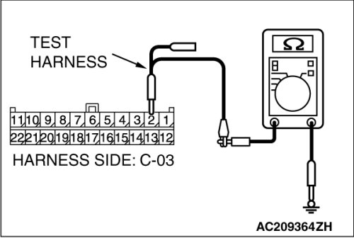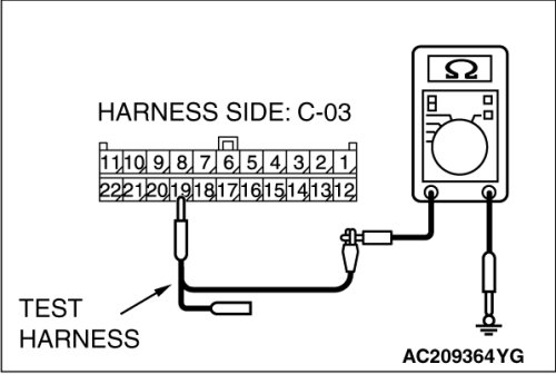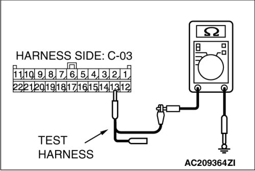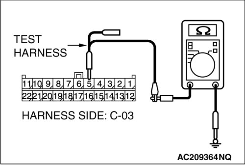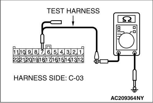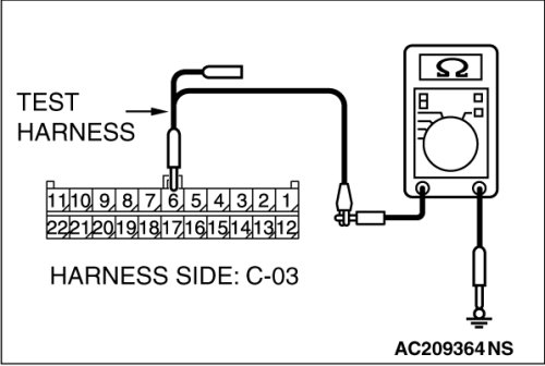 (5)Measure the resistance between intermediate connector (C-23) terminal 22 (CAN_H) and body ground. [ECLIPSE SPYDER]