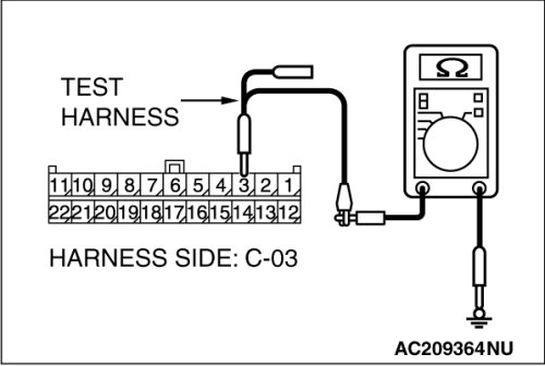 (2)Disconnect joint connector (3) C-03, and measure the resistance at the wiring harness side of joint connector (3) C-03.