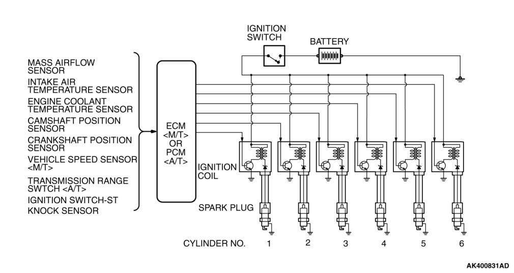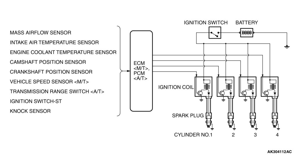 The ECM or PCM determines which ignition coil should be controlled by means of the signals from the camshaft position sensor which is incorporated in the camshaft and from the crankshaft position sensor which is incorporated in the crankshaft.