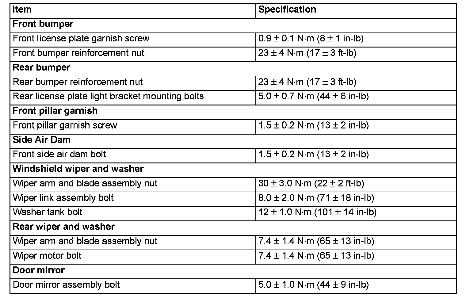 Fastener Tightening Specifications