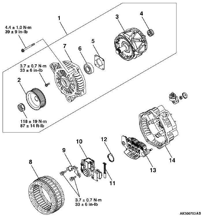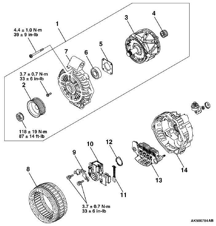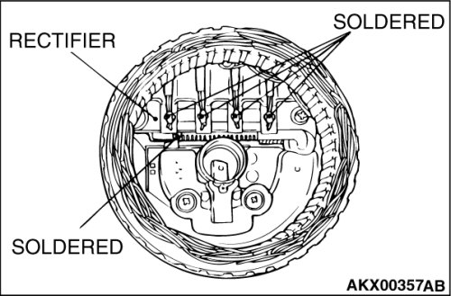 1. Use a soldering iron (180 to 250 W) to unsolder the stator. This work should complete within approximately four seconds to prevent heat from transferring to the diode.