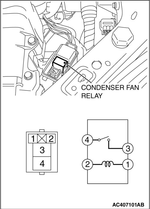 CONDENSER FAN RELAY CONTINUITY CHECK [2.4L ENGINE]