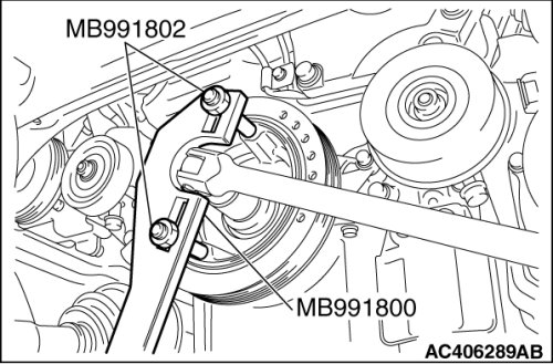 Use special tools MB991800 and MB991802 to remove the crankshaft pulley from the crankshaft.