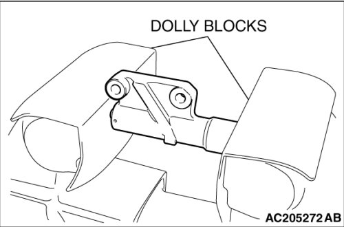 Place two dolly blocks in a vice as shown in the illustration, and then place the auto-tensioner in the vice.
