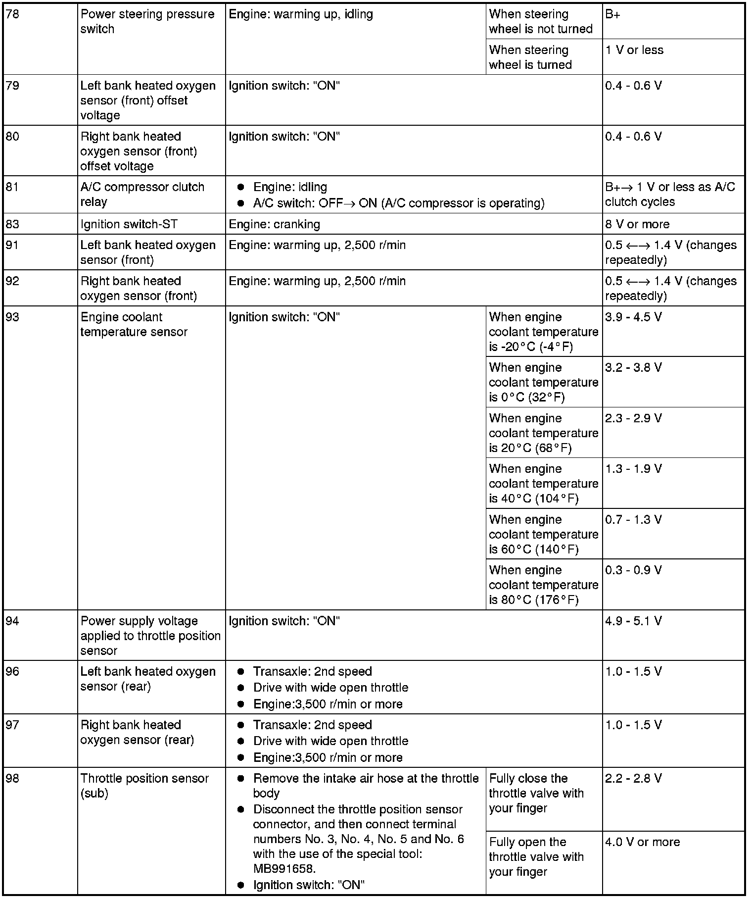 1. Disconnect the ECM [M/T] or the PCM [A/T] connectors B-19, B-20, B-21, B-22 and B-23, and connect check harness special tool MB991923 between the ECM [M/T] connectors or the PCM [A/T] connectors.