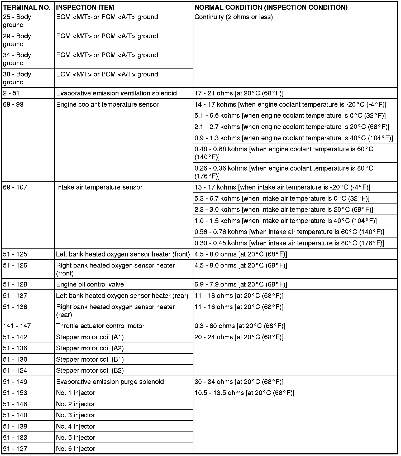 CHECK AT THE ENGINE CONTROL MODULE (ECM) [M/T] OR THE POWERTRAIN CONTROL MODULE (PCM) [A/T]
