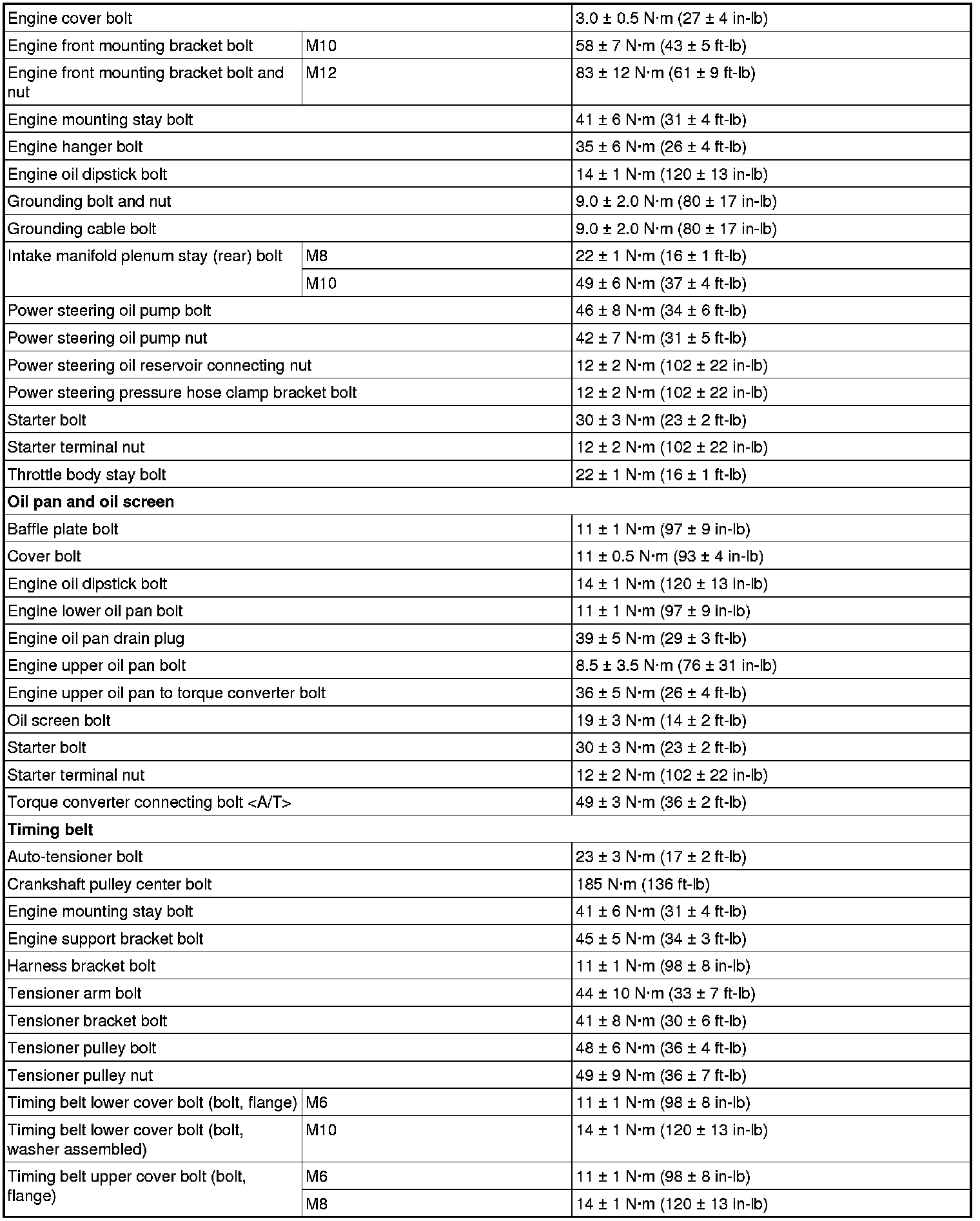 Fastener Tightening Specifications