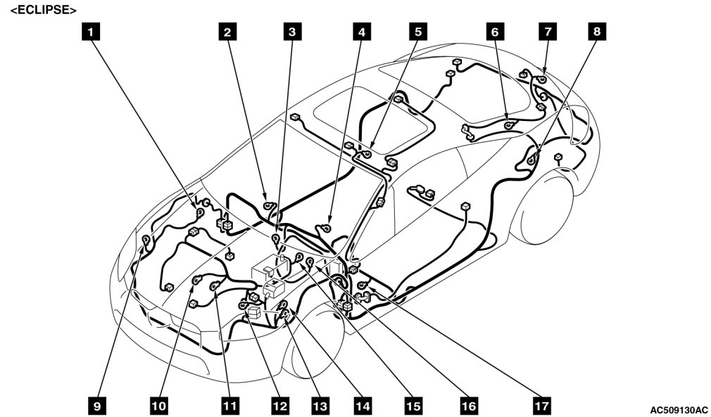 1 to 17 numbers correspond to the body ground point numbers in CIRCUIT DIAGRAMS.