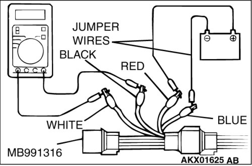 1. Disconnect the heated oxygen sensor connector and connect special tool MB991316 to the connector on the heated oxygen sensor side.