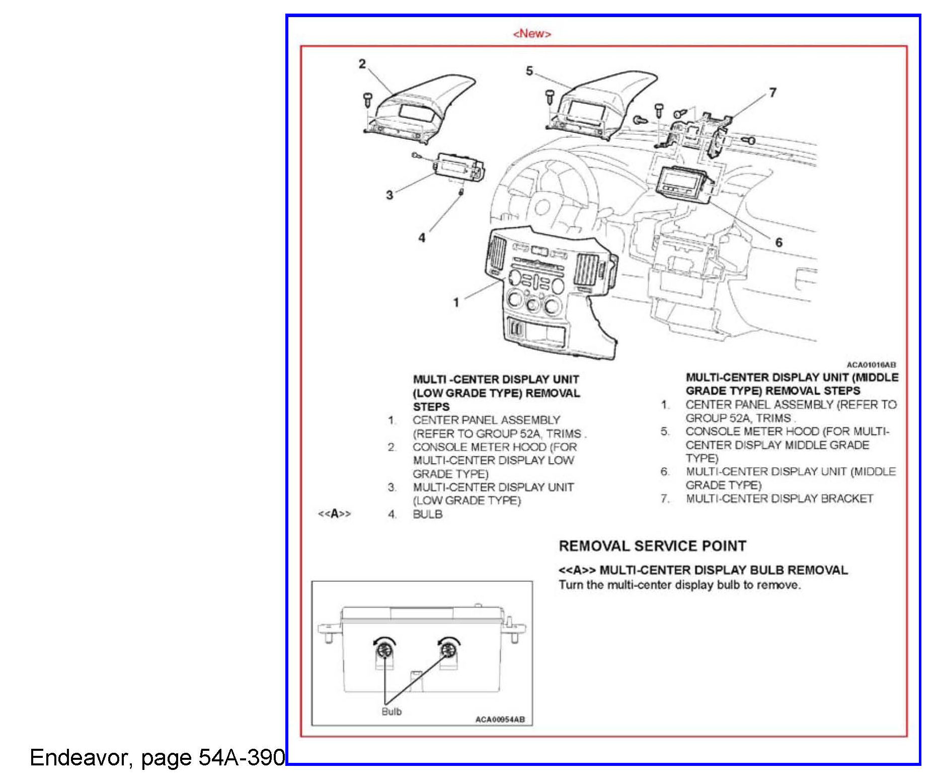 MULTI-CENTER DISPLAY BULB REPLACEMENT - SERVICE MANUAL REVISION