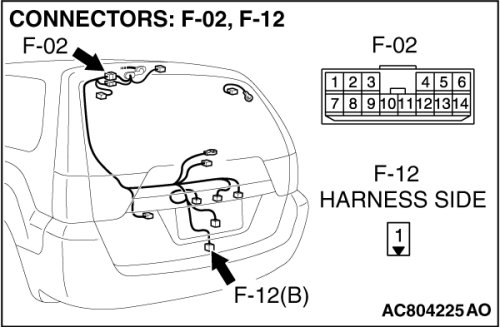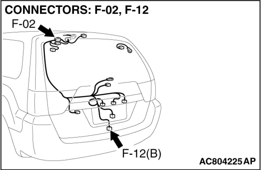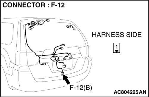 STEP 1. Check liftgate latch connector F-12 for loose, corroded or damaged terminals, or terminals pushed back in the connector.