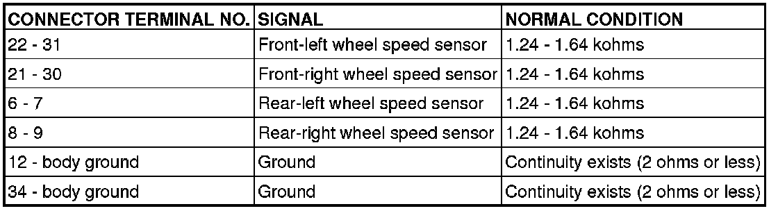 2. Measure the resistance and continuity between the terminals indicated in the table below.