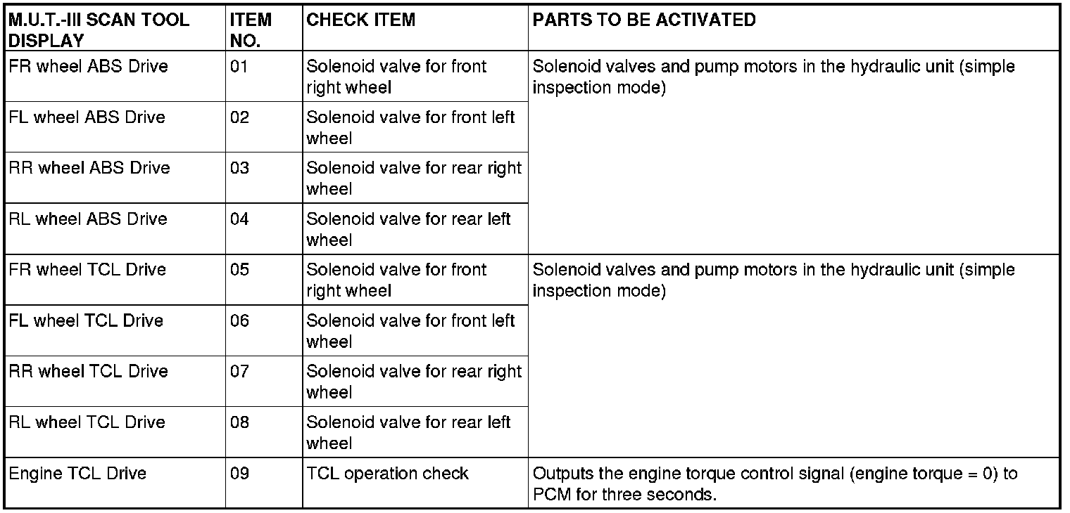The scan tool activates the following actuators for testing. (Refer to