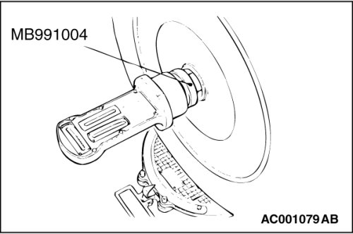 Attach the camber/caster/kingpin gauge to the driveshaft by using special tool MB991004. Tighten special tool MB991004 to the same torque 196 - 255 Nm
