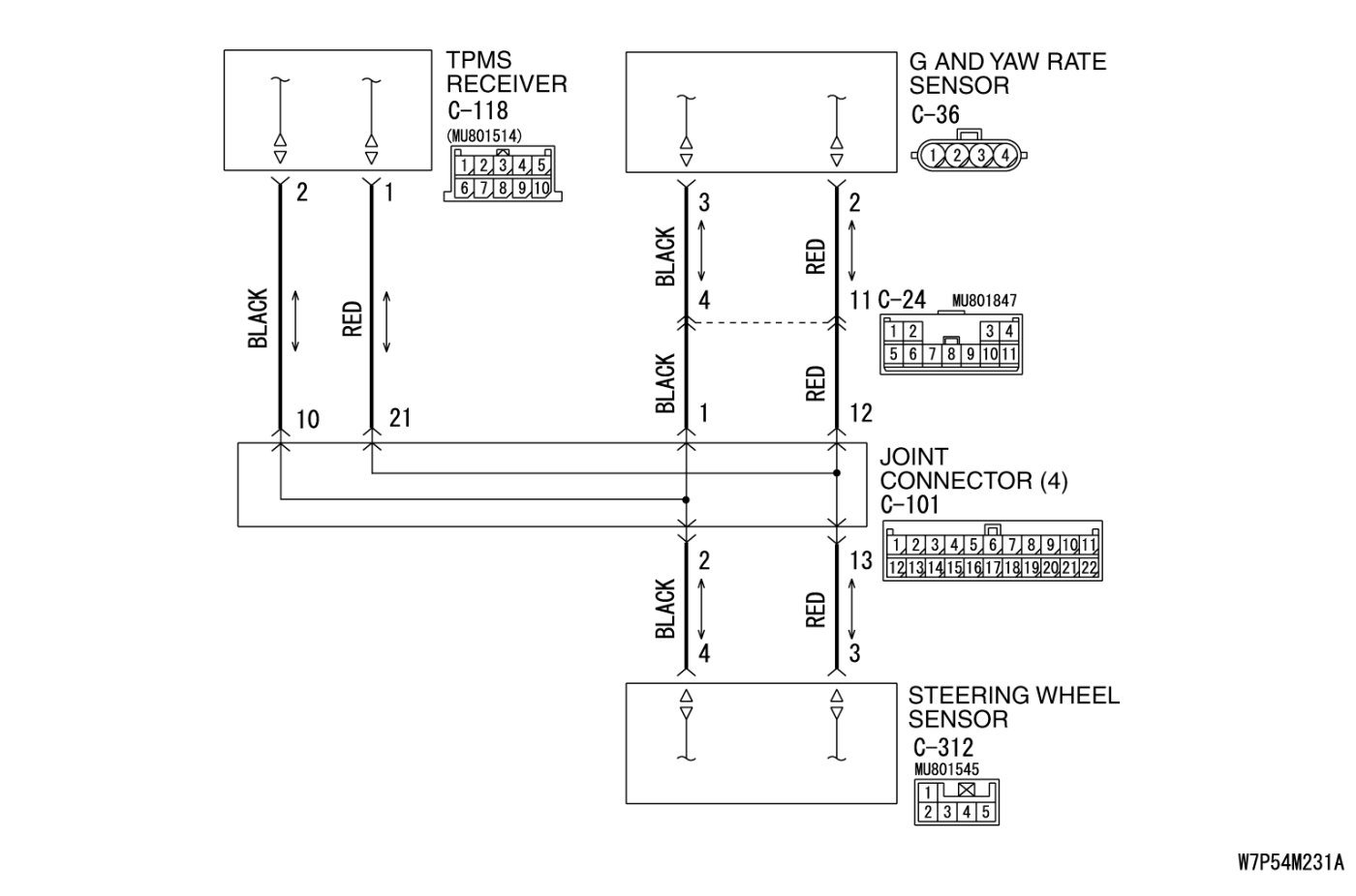 STEP 1. Check powertrain control module connector B-18, combination meter connector C-102 and data link connector C-121 for loose, corroded or damaged terminals, or terminals pushed back in the connector.
