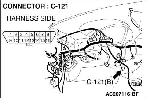 STEP 1. Check data link connector C-121 for loose, corroded or damaged terminals, or terminals pushed back in the connector.