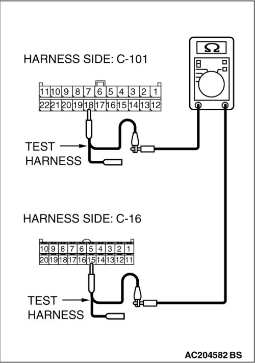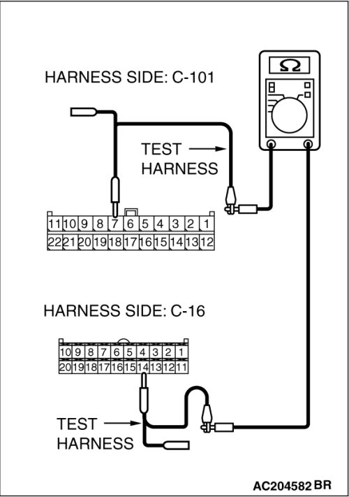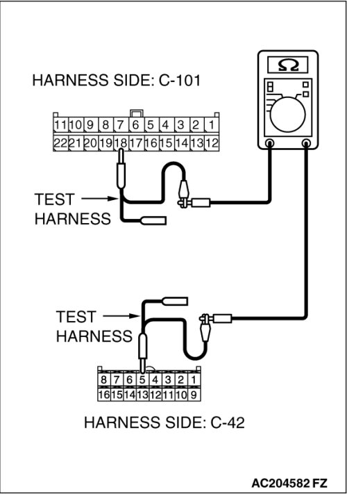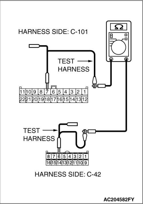 STEP 13. Check the CAN bus lines between joint connector (4) and the A/C-ECU. Measure the resistance between joint connector (4) C-101 and A/C-ECU connector C-42 [manual air conditioning system] or A/C-ECU connector C-16 [automatic air conditioning system].