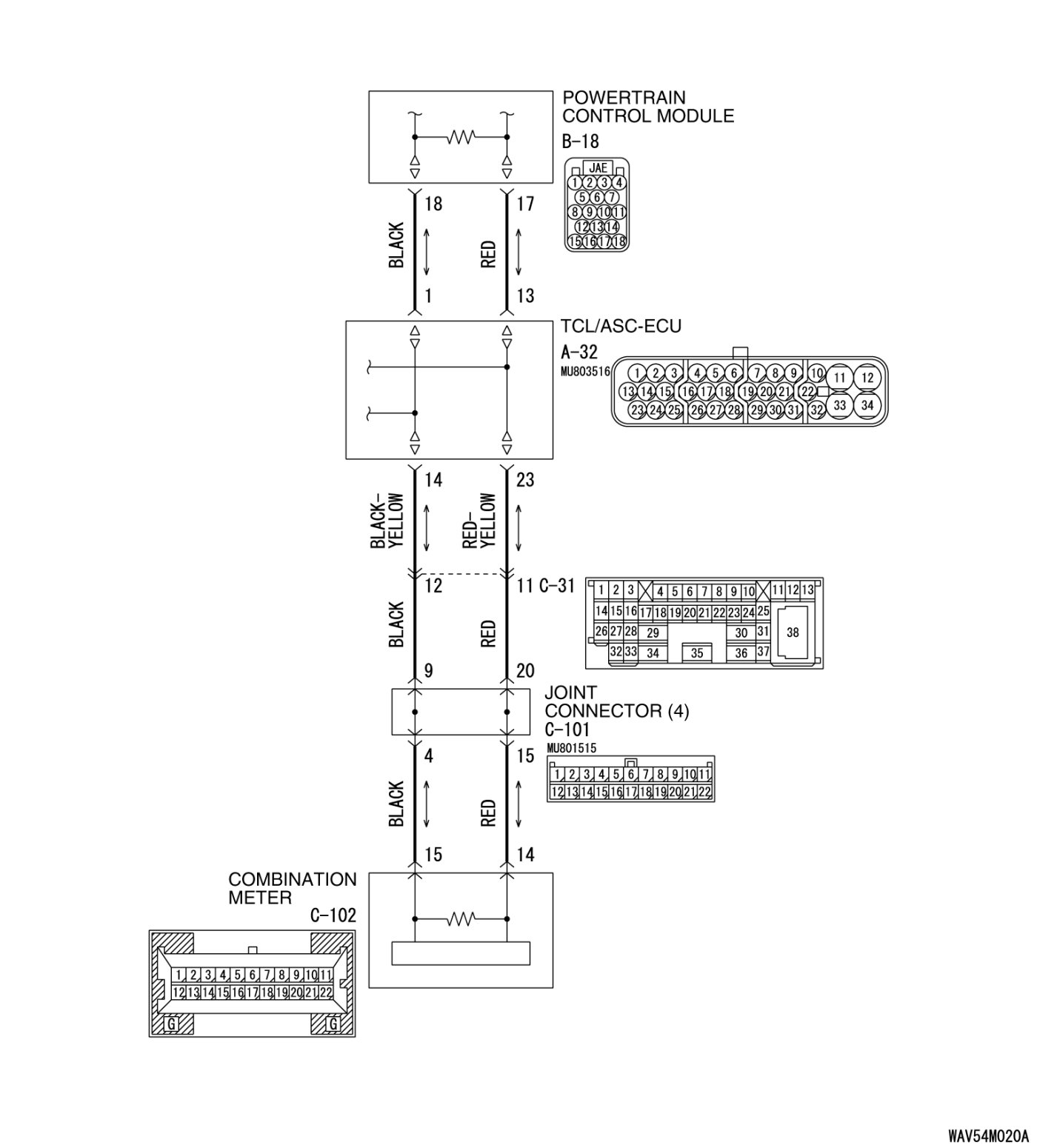 Q. Are TCL/ASC-ECU connector A-32 and powertrain control module connector B-18 in good condition?