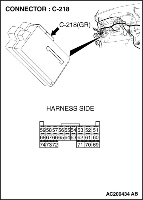 STEP 1. Check joint connector (4) C-101 and ETACS-ECU connector C-218 for loose, corroded or damaged terminals, or terminals pushed back in the connector.