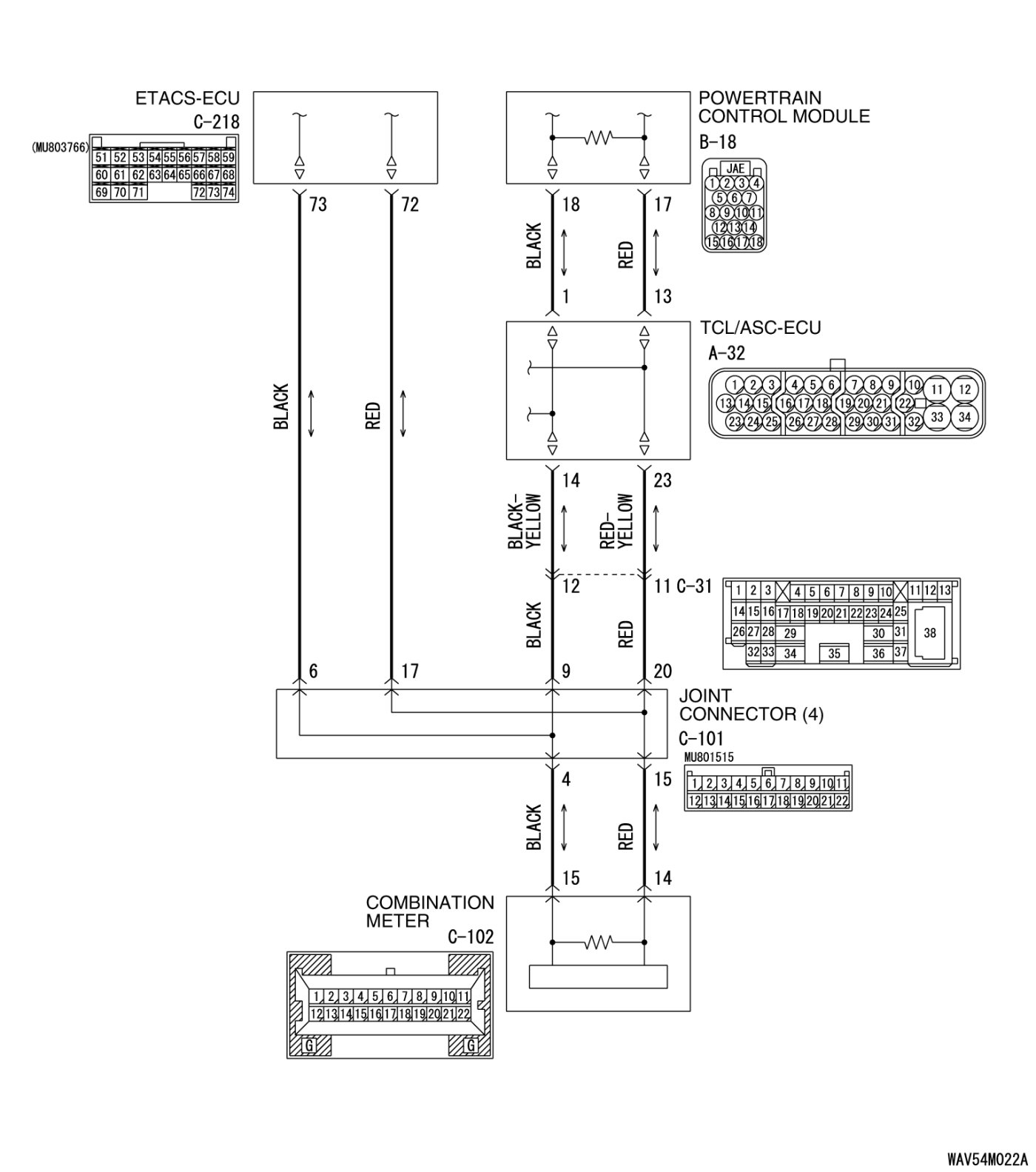 STEP 2. Check the CAN bus lines between joint connector (4) and the ETACS-ECU. Measure the resistance between joint connector (4) C-101 and ETACS-ECU connector C-218.