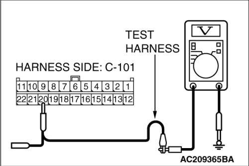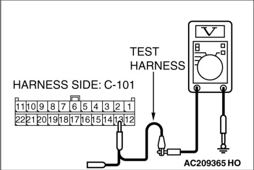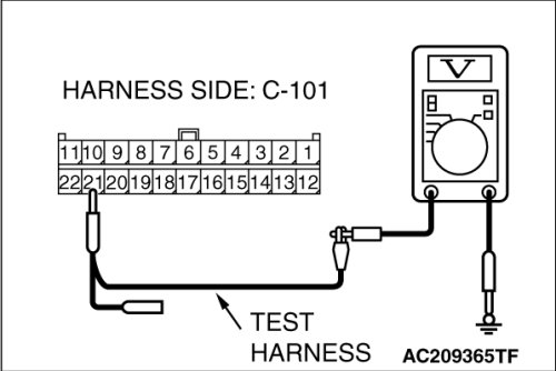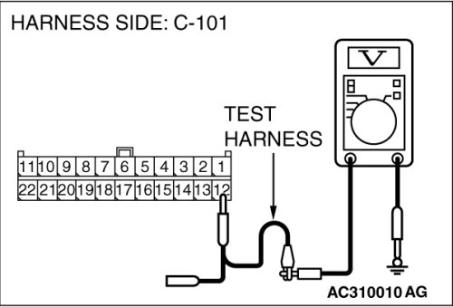 STEP 30. Check the CAN_H line (communication line only) between joint connector (4) and multi-center display unit (middle-grade type or Mitsubishi Multi Communication System) connector for a short to the power supply. Measure the voltage at joint connector (4) C-101.