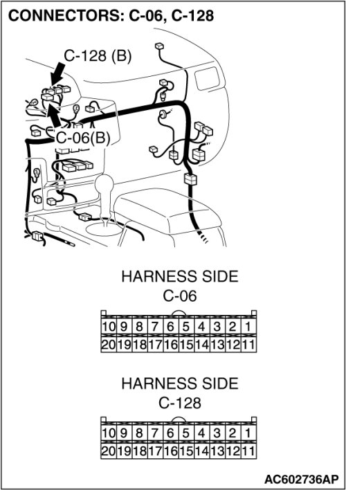 Q. Is multi-center display unit (middle-grade type or Mitsubishi Multi Communication System) connector C-06[ multi-center display unit (middle-grade type)] or C-128[ multi-center display unit (Mitsubishi Multi Communication System)] in good condition?