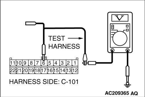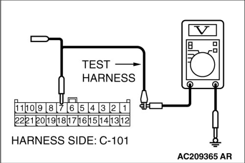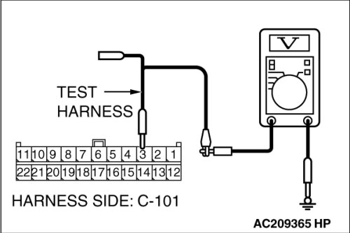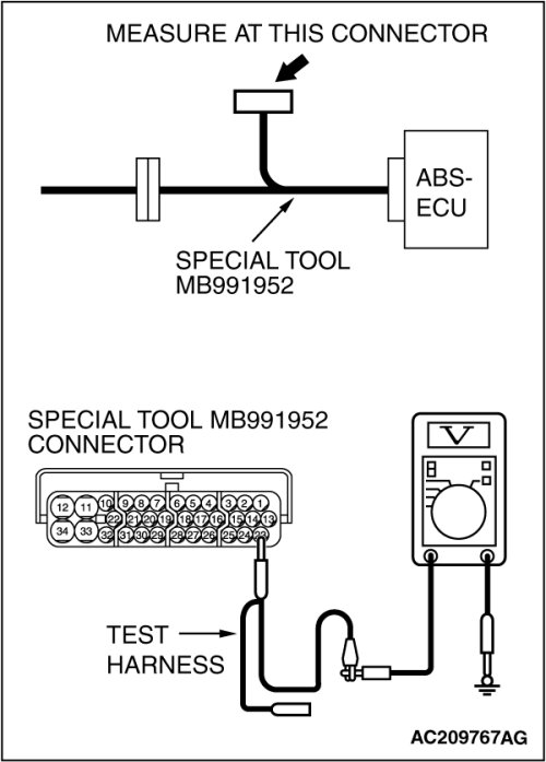 (2)Connect special tool MB991952 (ABS check harness) to the TCL/ASC-ECU and the wiring harness, and measure the voltage at special tool MB991952 (ABS check harness).